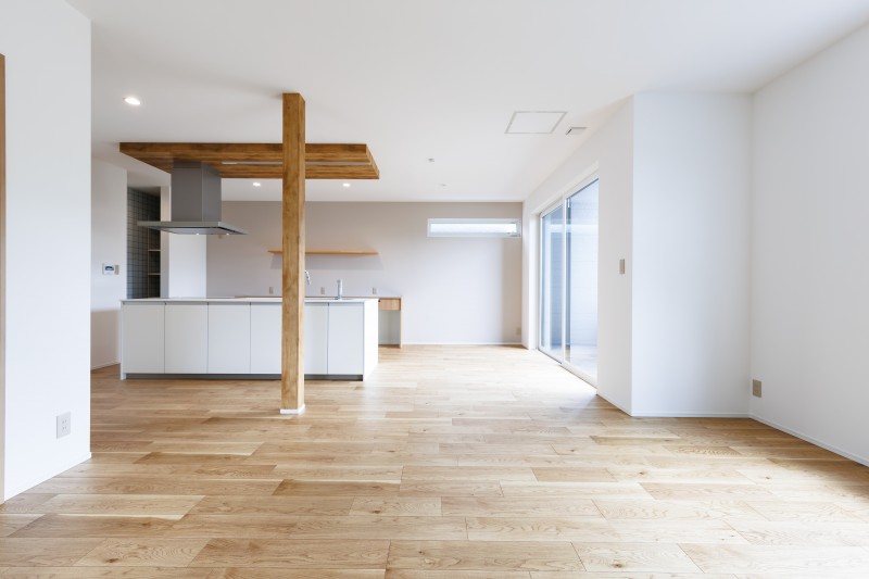 2階にあるリビング(LDK)は、大きな窓が特徴です。